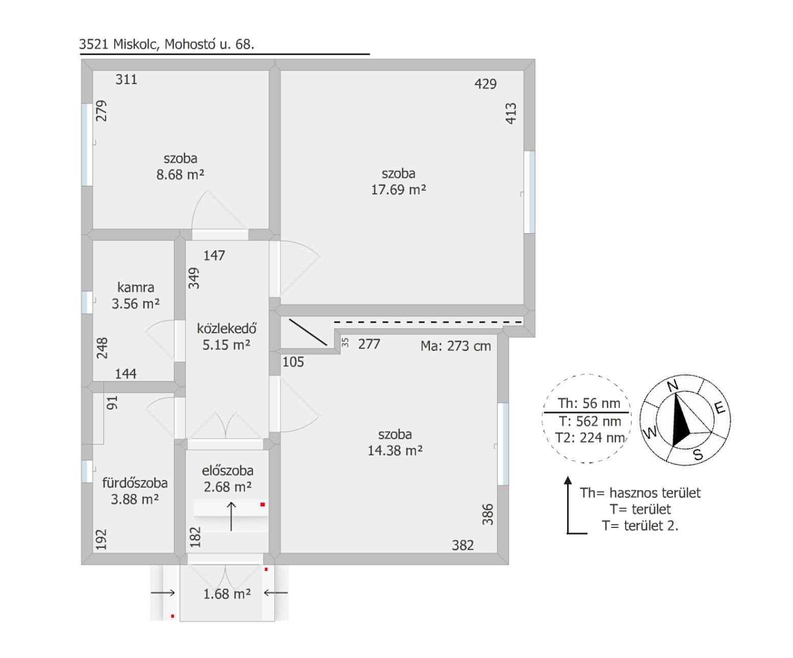 3 szoba, fürőszoba, kamra, előszoba, közlekedő, pince.
