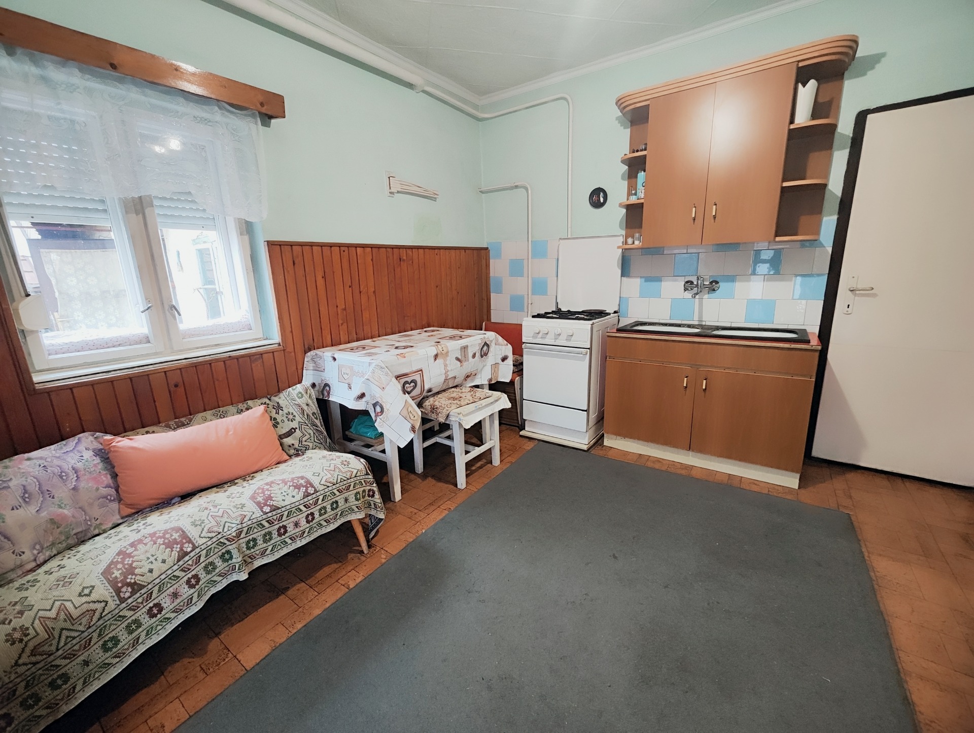2 szoba, nappali, konyha, fürdőszoba, WC, veranda, pince, melléképület, tárolók, pince