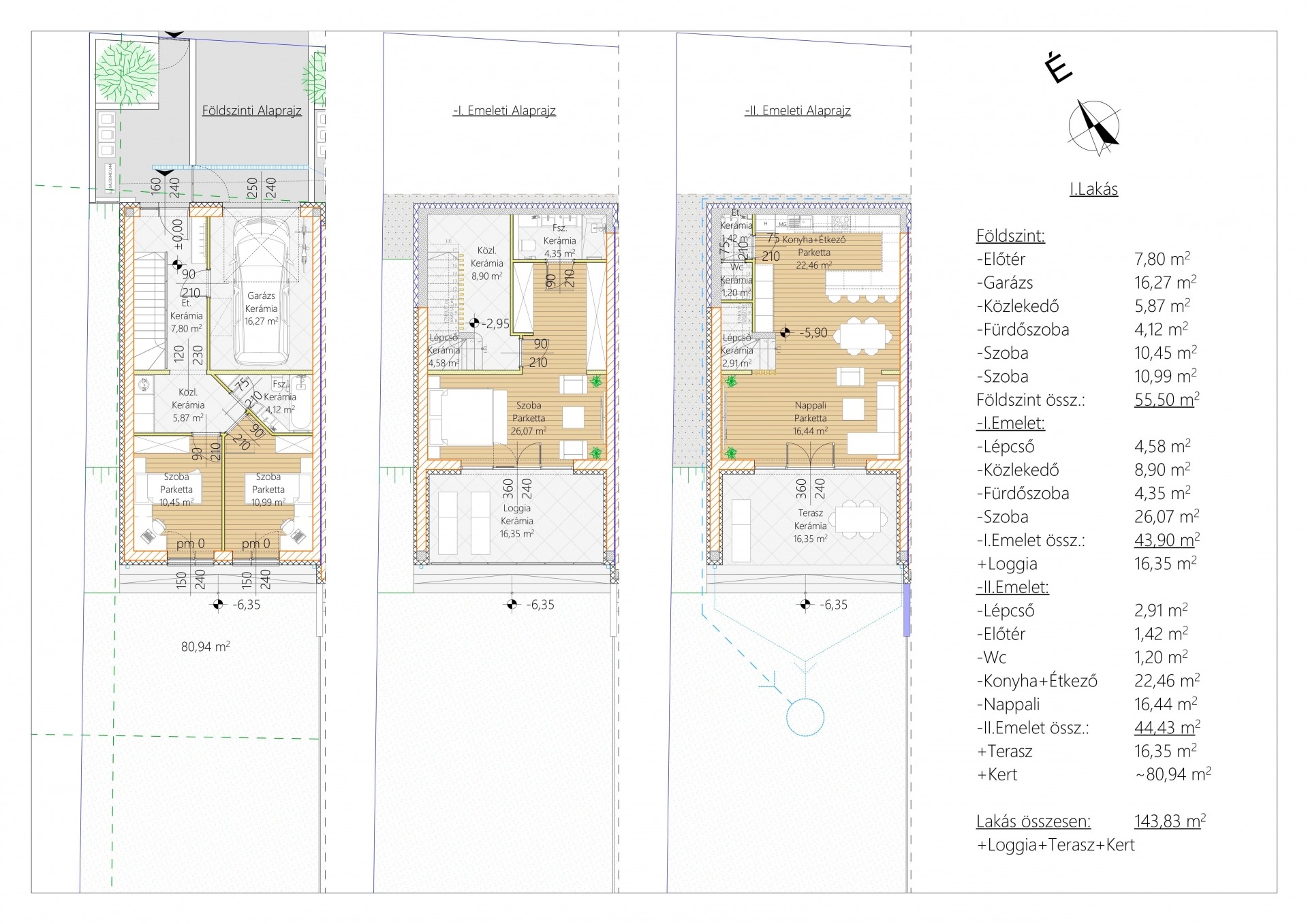 A 4 lakásos társasház sorház jelleggel készül, egyenként 144 nm alapterülttel, önálló garázzsal és 81 nm kertkpacsolattal.